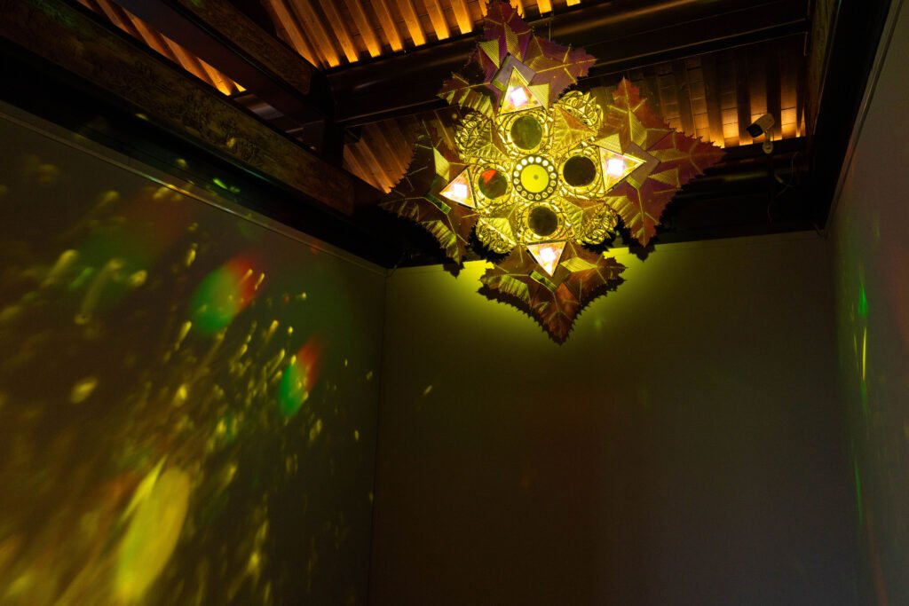 本次展览以敦煌经变为原点,却不止步于复刻历史的回响。艺术家们以解构的手法打开传统的肌理,用数字、装置、影像、综合材料等媒介,将佛经中的“空性”与“幻相”投射至当下的生存境遇。壁画中的莲华或许碎裂为像素的尘埃,飞天的飘带可能化作数据流的轨迹,而极乐世界的“净土”则在赛博空间的迷雾中若隐若现——这些作品不再追问“相”的真伪,而是以当代的困惑重构信仰的谜题:在虚实交织的时代,我们如何安放对意义的渴求?